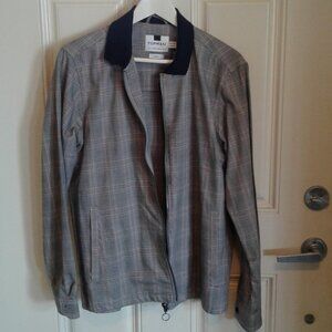 gently used Topman men's jacket. Zip up. Black, white, & red plaid. Size small.