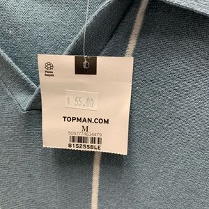 NWT. Topman collared preppy polo sweater. Blue and white stripe. 100% cotton. Size M.