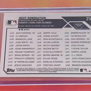 Dynamic Topps card featuring young stars in action. Bold blue and red design. Perfect for collectors.