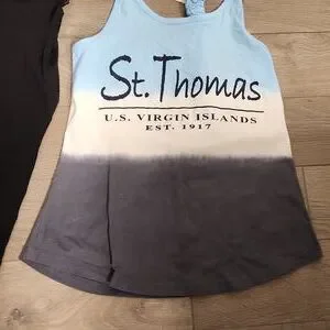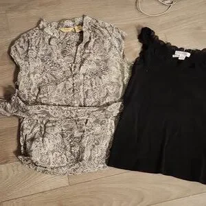 3 tops foe the price of 1. black tank top, cotton, with lace, new wirh tags, blue tank top, and cotton blouse