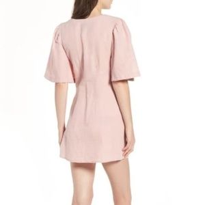 A lightweight cotton-linen blend gives this chic shift a breezy vibe, styled with a flattering V-neck and voluminous elbow-length sleeves.