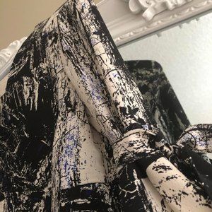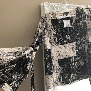 Perfect bell sleeved blouse for work! Black and white pattern with little hints of indigo. Size 6 US.