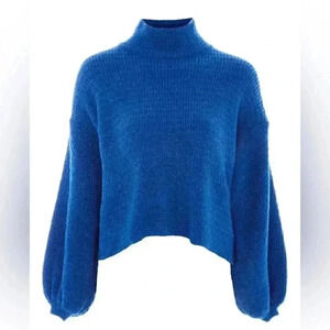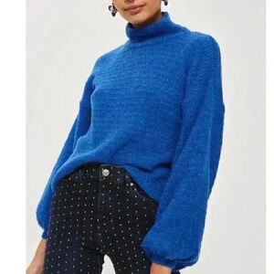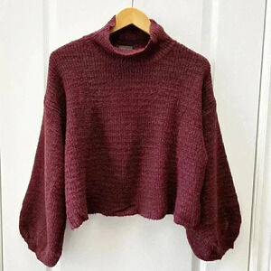 Topshop Balloon Sleeve Roll Neck Sweater Cropped Burgundy Size 4 Small