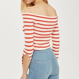 Topshop Bardot Split Sleeve Knitted Top, off shoulder, Size US 4