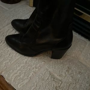 joannawear @emmaquinn829 Hi! The heel height at the back of the boot is 3 and 1/8" and at the inner part of the boot it is 2 and 3/8" Photos coming right now too! These boots are in perfect, very gently worn condition...no scuff marks! :)