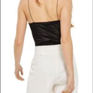 Topshop Black Beaded Lace-up Velvet Bodysuit