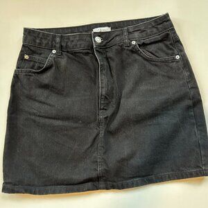 Topshop denim black mini skirt. The model is wearing size US4, but size for sale is a US10.
