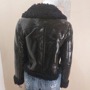 Topshop Black Faux Patent Leather Aviator Jacket