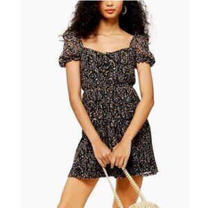 Topshop Black Floral Mini Dress Summer Little Black Dress LBD Size 2