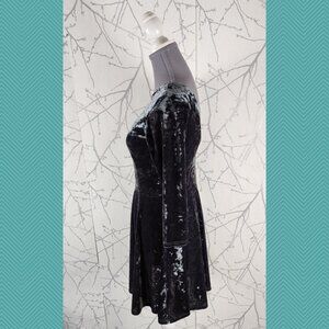 Topshop Blue Gray Velvet Scoop Back Skater Dress