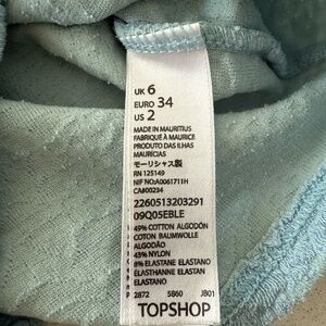 Topshop Blue Jacquard Floral Design V-Neck Short Sleeve Top