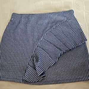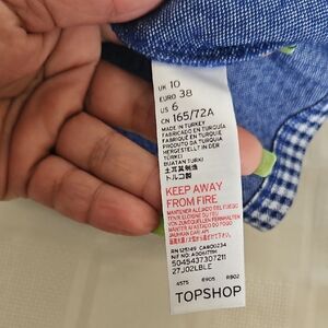 This stylish mini skirt from Topshop features a striking asymmetrical design with a tie front, perfect for casual or work settings. The blue and white color scheme adds a fresh touch, while the pencil silhouette ensures a flattering fit.