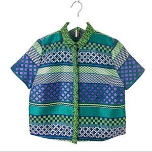 Topshop Box Fit Button Up Patterned Short Sleeve Shirt Size 2
