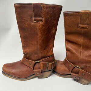 The style is nearly identical to the iconic Frye 77300 Harness Motorcycle Boots (retail $400+), making them a chic and durable choice for any wardrobe.