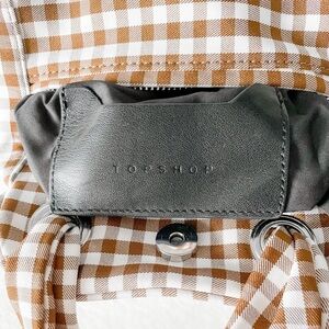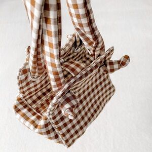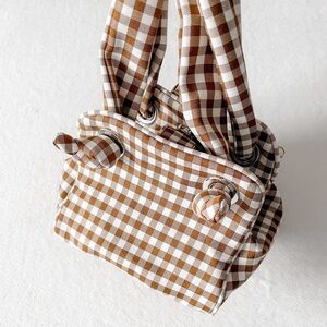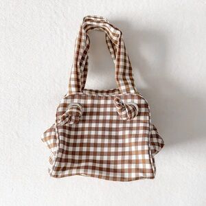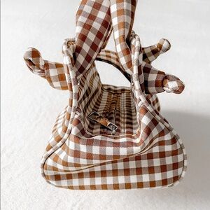 Chic mini bag with a checkered pattern. Features sturdy handles. Perfect for casual outings.