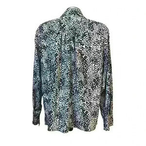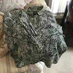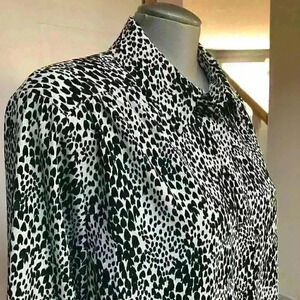 Topshop Button Up Shirt Long Sleeve Animal Print Pleated Front Black