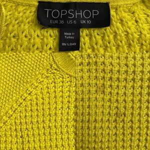 Topshop Chunky Waffle Knit Long Raglan Sleeves Crewneck Bright Yellow Sweater 6