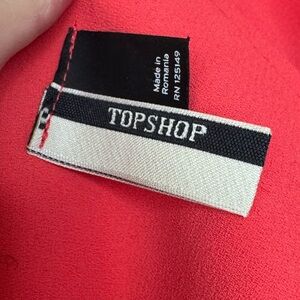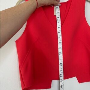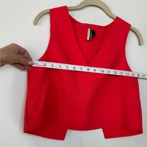 This striking bright orange/coral tank top from Topshop features a sleeveless design with an asymmetrical crop style. The structured fabric and clean lines offer a modern, tailored look, while the vibrant color adds a bold touch to any outfit.