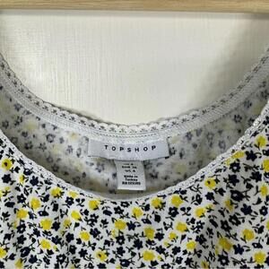 Topshop Cropped Lettuce Hem Ditsy Floral Print Tank Top