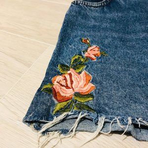 Floral embroidery on the sides. Vintage-inspired denim. Tag is a size 6 but fits more like a 4.