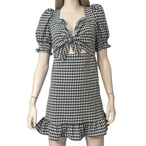 Topshop Dress Gingham Check Cut Out Back and Front Puff Sleeves Shirring NWOT