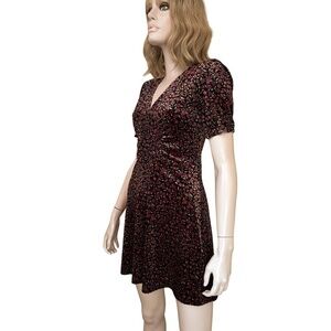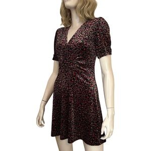 Topshop Dress Velvet Stretch Velour Floral Short Sleeve Pull on Super Soft NWOT