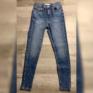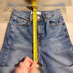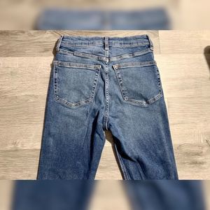 High rise jeans. Classic blue denim. Perfect for any occasion.