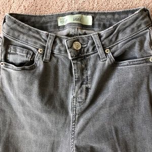 TOPSHOP MOTO JAMIE light grey denim skinny jeans. Single button closure with zipper and 5 pockets. Waist 25 inches and length 32 inches. 91% cotton, 6% polyester, 3% elastase. In very good condition.