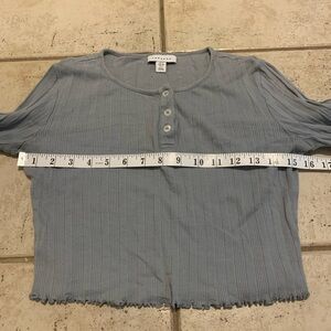 Topshop Light Blue/grey Ribbed Henley Crop Top - US 6