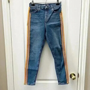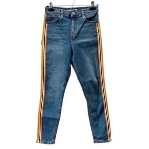 Topshop Moto High Rise Jamie Skinny Jeans Blue Orange Side Stripe Size 26