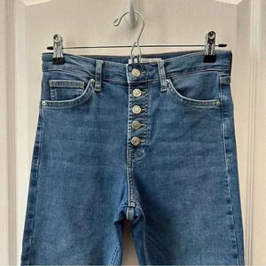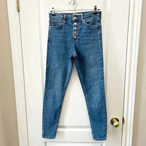 Topshop Moto Jamie Button Fly Skinny Jeans Medium Blue Denim Size 26