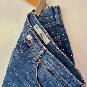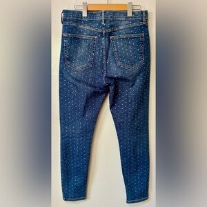 Topshop| ‘Moto Jamie’ Diamond Rhinestone Denim Skinny Blue Jeans Sz 32W & 30L