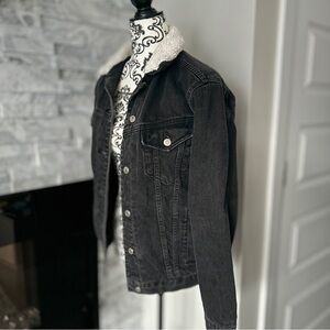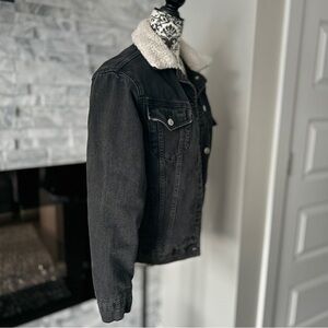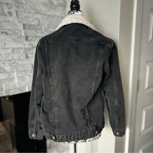 Topshop Moto Sherpa Lined Oversized Denim Jean Jacket Black 2
