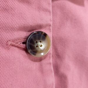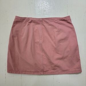 Cute denim mini skirt from Topshops's Moto line in a salmon pink wash with tortoishell buttons running down the front to the right. Side seam pockets either side. Unlined. Excellent preloved condition no stains or tears.