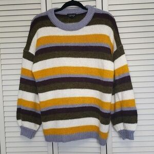 Topshop Multi Stripe Oversized Sweater, Wool Alpaca Blend, Size S