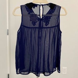 NWT Sheer Body 100% Polyester Collar 100% Cotton