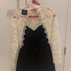 Topshop Open Back Lace Top Black Bottom Romper Sz 2 NWT