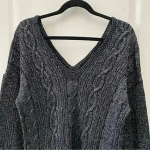 Topshop Oversized Sweater Cable Knit V Neck Tunic Black Silver Metallic Small 4