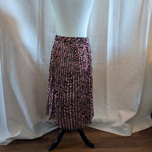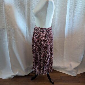 Topshop Pink Animal Print Pleated Midi Skirt Asymmetrical Hem Size 4