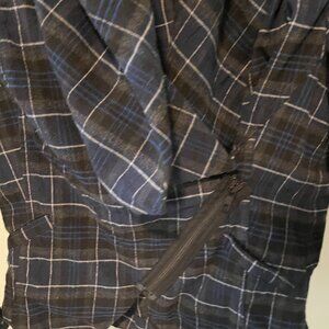 Vivian Westwood style - plaid and exposed zippers. Wears well with jeans or black trousers.