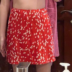 Topshop red dalmatian print satin mini skirt. Size 6 US.