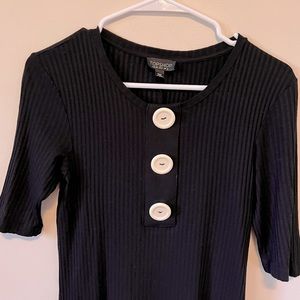 Soft & stretchy ribbed top. 3 faux buttons. 1/4 sleeves.