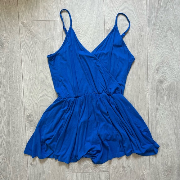 Romper with spaghetti straps and flowy shorts (almost gives illusion of a skirt), wrap top