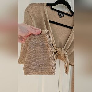 Topshop Shimmer Knit Gold Tie-Front Cardigan