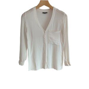 This is a relaxed fit button down blouse by TOPSHOP. Made from a Semi-sheer and comfortable white viscose fabric.
