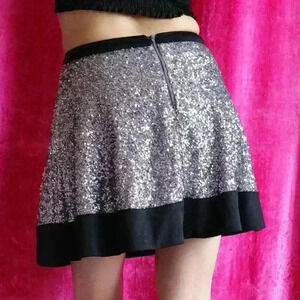 Topshop Silver Sequin Flare Mini Skater Skirt, US 6 Party, New Year’s Glittery