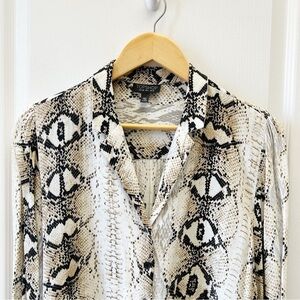 Topshop Snakeskin Print Button Up Shirt Blouse Cream and Black Size 6