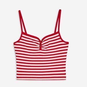 Bright stripes make this ribbed crop tank a retro style that's ready for fun in the sun.