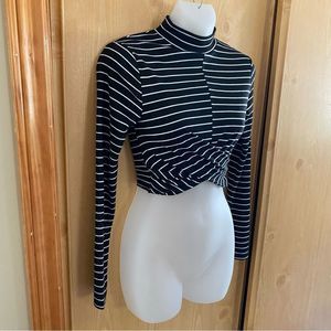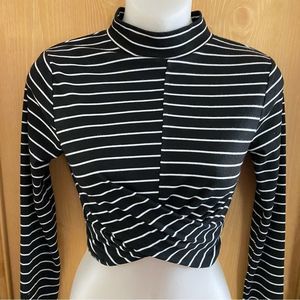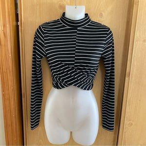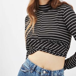 Topshop • Stripe Long Sleeve Twist Front Mock Neck Crop Top