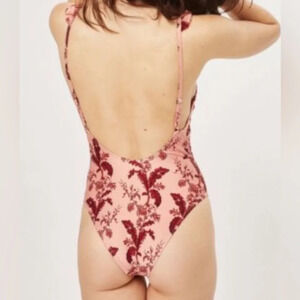 Topshop Swimsuit One Piece Bathing Suit Floral Pink Ruffle Frill Romantic Sz 8